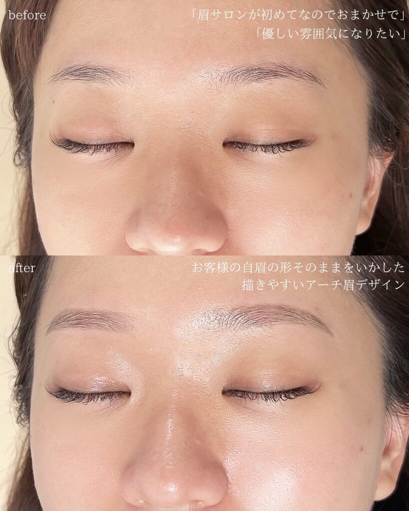 お客様が描きやすい、自眉そのままの形であるアーチ眉をご提案させていただきました。