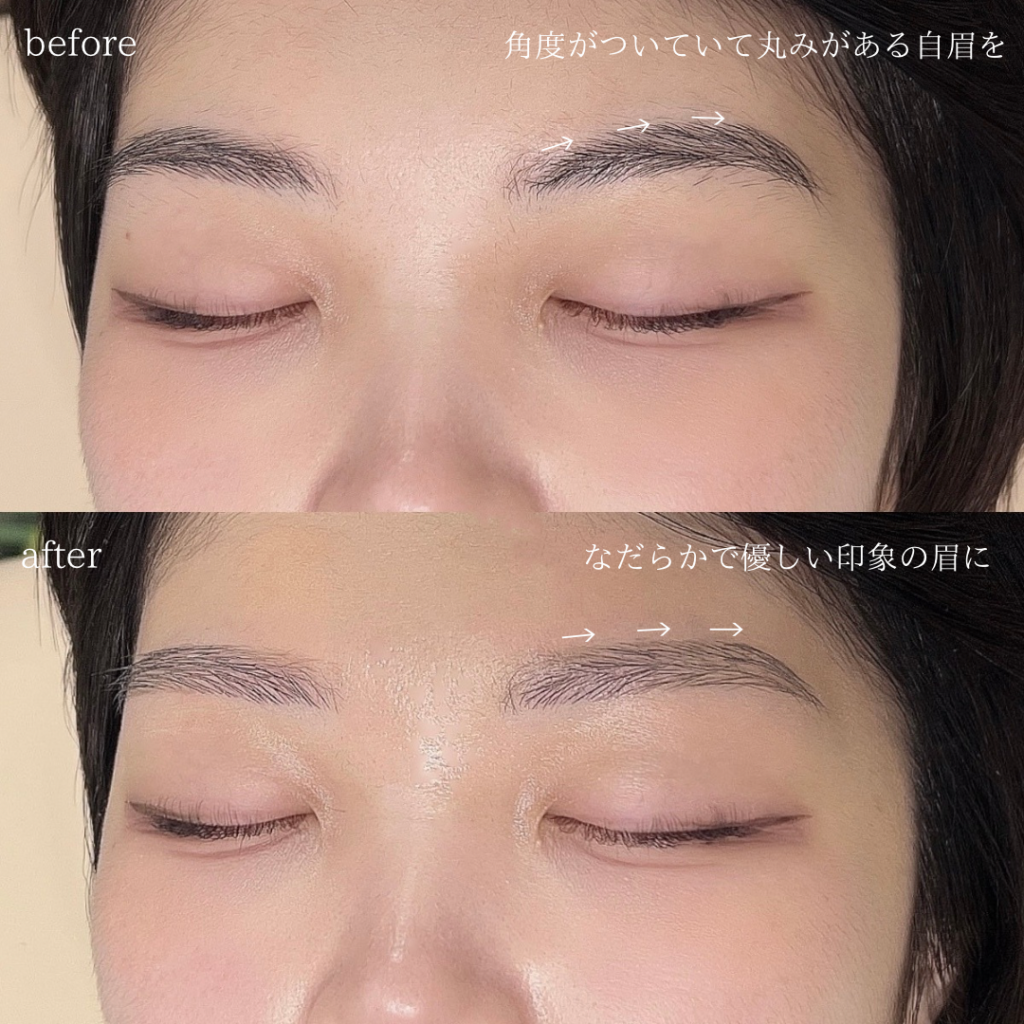 →眉頭から眉山までの丸みを直線的にしてスッキリさせる